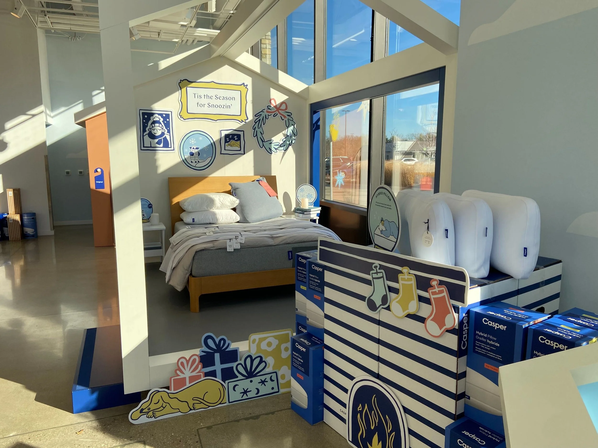 Casper Holiday Campaign 2022 Bed Bath & Beyond Flagship Shop-in-Shop Casper South Coast Plaza Store Design Casper Las Vegas Showroom Design Casper Holiday 2021 Window Displays The Bedroom Popstar Website Design